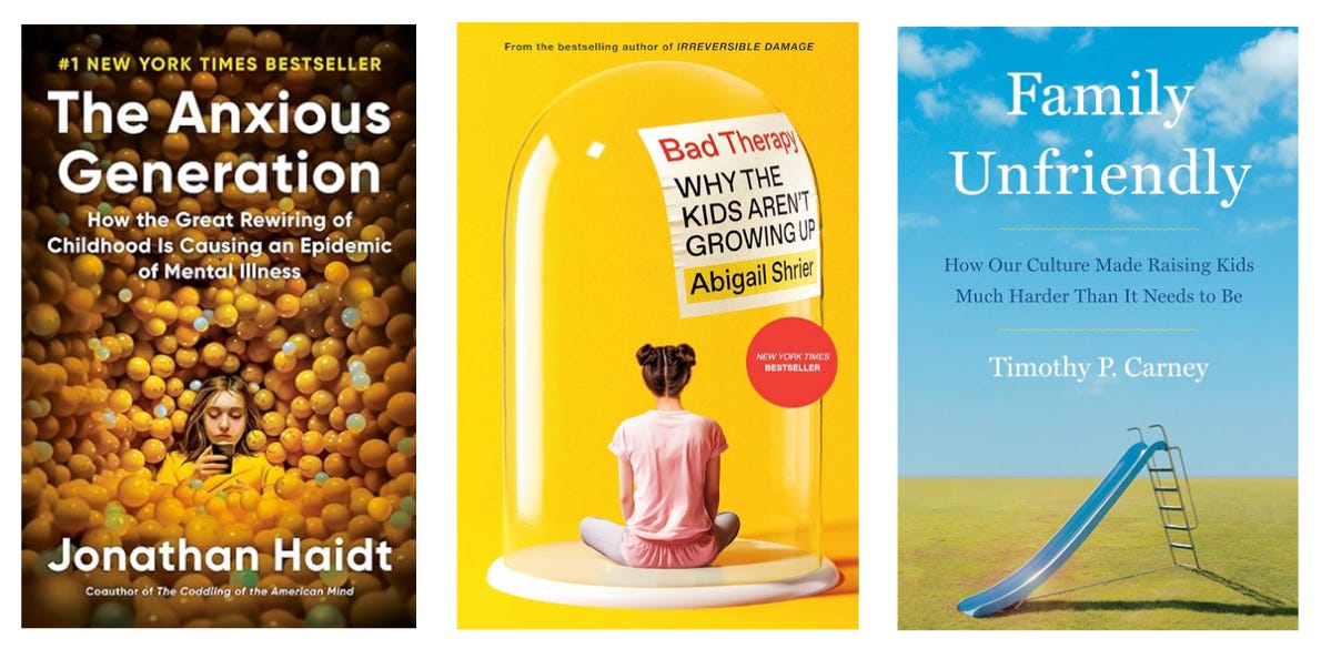 Jonathan Haidt’s The Anxious Generation nailed it. Along with Bad Therapy by Abigail Shrier and Family Unfriendly by Tim Carney, these are the trifecta of books to grab right now.